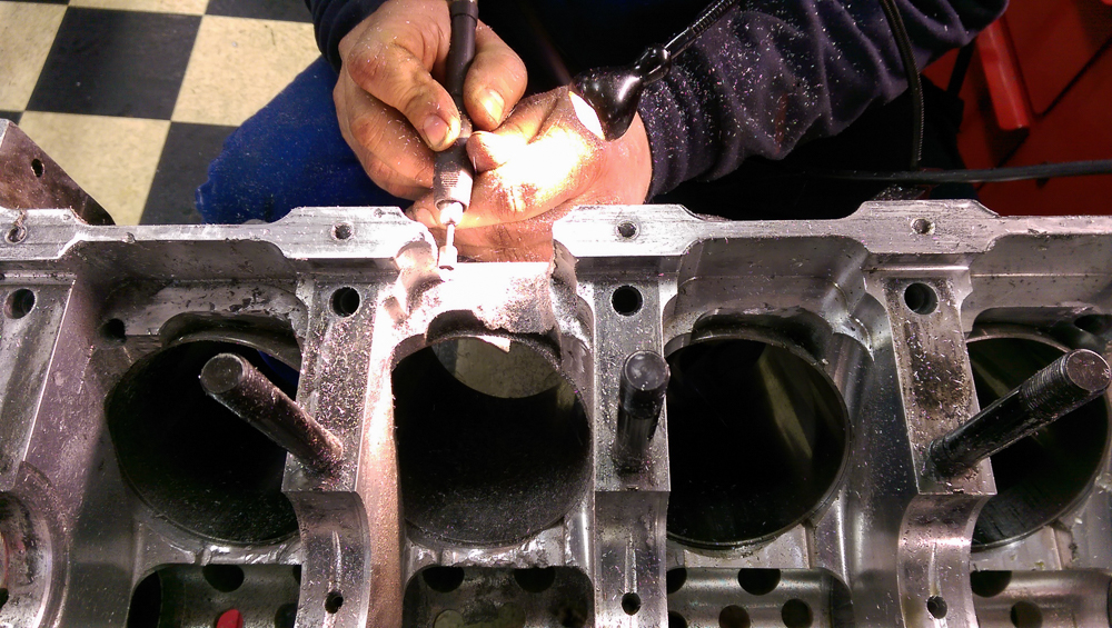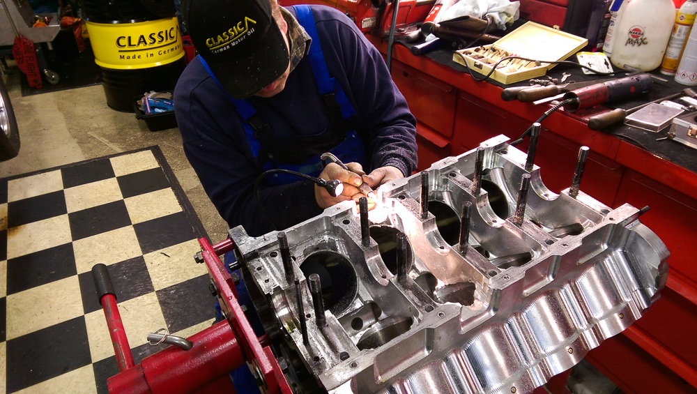 Und dann in mühevoller Heimarbeit den Block herrichten, bevor er geschweißt wird.
